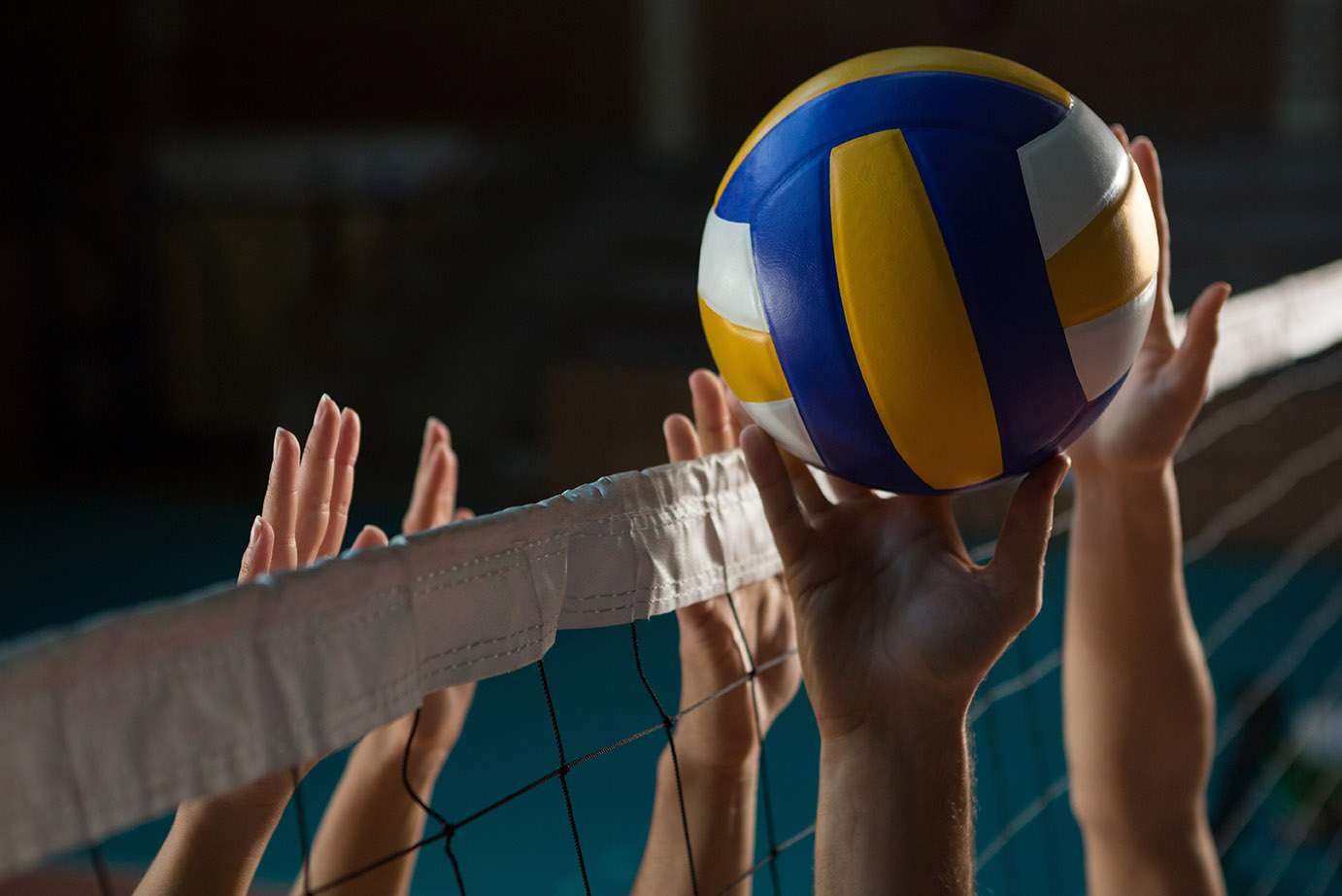 En règle générale, le beige est privilégié pour un terrain de volleyball, avec des lignes bleues. On peut également très bien imaginer un terrain rouge brique ou vert standard pour un rendu plus coloré, toujours avec des lignes bleues caractéristiques du volley.   »